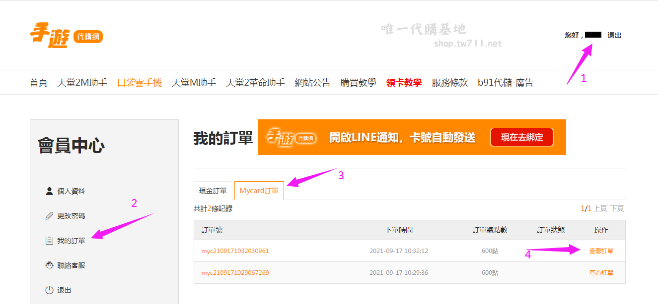 客服作業完成后,自助查詢領卡。用戶中心---我的訂單號--mycard訂單---訂單詳情